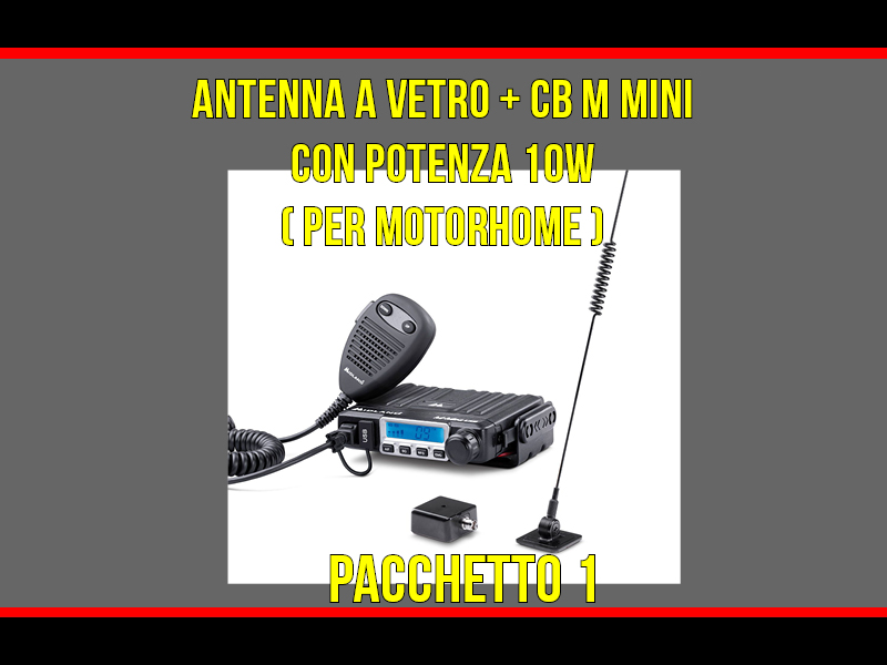 Pacchetto 1 antenna a vetro + cb M Mini 10w per motorhome