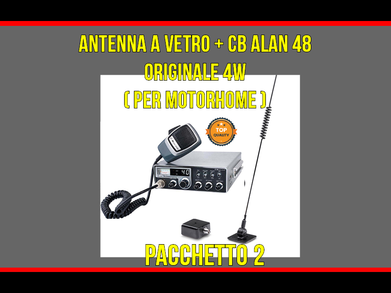 Pacchetto 2 antenna a vetro + cb alan 48 per motorhome